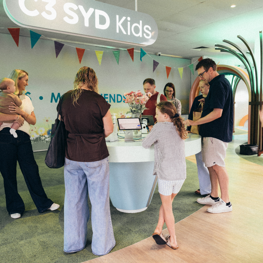 This is a fun and safe space run by our amazing Kids team. They’ll be there to help you check in your children when you arrive.